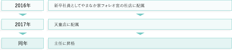 働き方も働く内容も人それぞれ。色々なキャリアプランをご用意しています。 当社は社歴に限らず色々なことに挑戦できる社風です。店舗作りのスペシャリストになるもよし、おいしい商品の開発に力を注ぐべく、チェーン本部のスタッフとして商品開発部に行くもよし、与えられた道は無数にあります。みなさんの『これやりたい!』を全力で応援いたします。